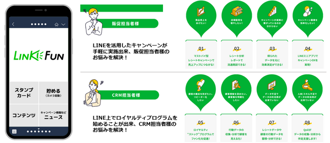 「さが推しポイント」の立ち上げにあたり、佐賀県や佐賀県産品を推してくださる方々の来店や購入など、さまざまなアクションを集約する仕組みが必要だったため、株式会社Qoilが提供する、購入レシートでスタンプが貯まるLINEミニアプリ「購入スタンプミニアプリ for メーカー」に新たにファン育成機能を追加した「LINKFUN」を導入しました。