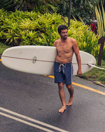 ショートからロングまで その時の波に合う板で楽しむ。現在はバリを拠点にしており、自身のサーフボードレーベル Surf-A-Billy サーフアビリーも展開。デウス浅草店では ジャレッドの板も取扱中。(全て1点もの)