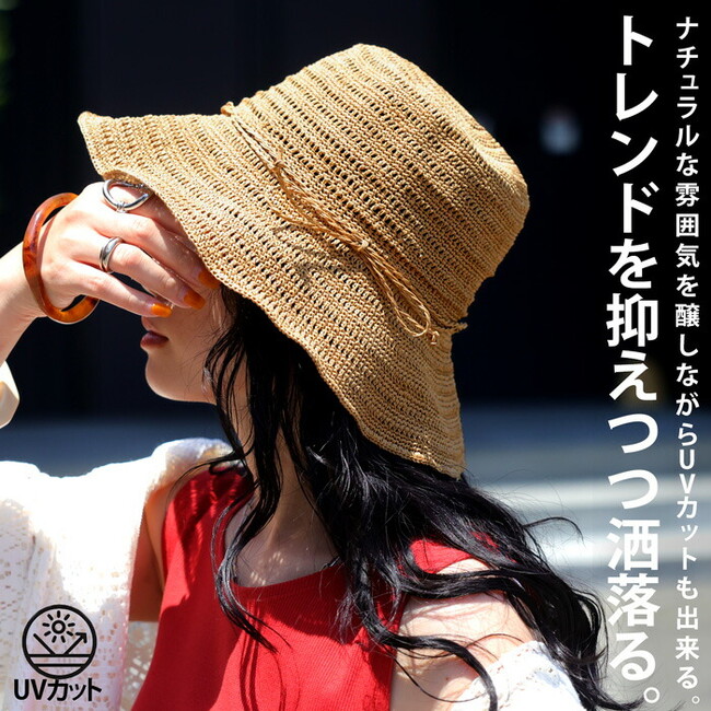 ペーパー素材ならではの軽さで、ナチュラルな雰囲気たっぷりの大人ハット。こだわりシルエットで柔らかな女性らしさを感じさせます。UVカット付きでつばが広めの仕様だから、しっかり日よけでき、強い日差しから守ってくれる大活躍アイテムです。
