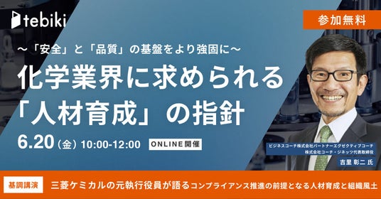 デスクレスワーカー向け現場支援システムtebikiを提供するTebiki株式会社(本社:東京都新宿区、代表取締役:貴山敬)は、化学業界における人材育成をテーマにしたカンファレンスを、2025年6月20日(金)にオンラインにて開催いたします。