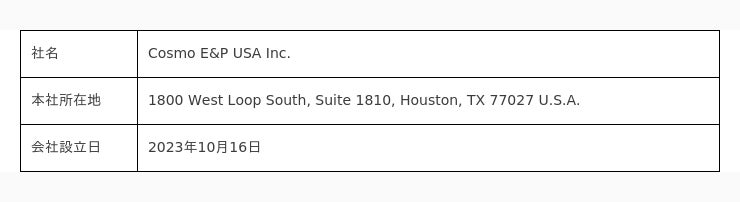 コスモエネルギー開発株式会社(代表取締役社長:西 克司、以下、「当社」)は、米国のリチウム資源開発事業への新規参入を目指した取り組みを開始すべく、2023年10月16日付けで米国法人「Cosmo E&P USA Inc.」を設立致しました。