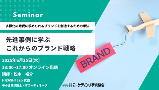 株式会社マーケティング研究協会は2025年6月25日、オンラインセミナー、先進事例に学ぶこれからのブランド戦略~多様化の時代に求められるブランドを創造するための手法~を開催します。※アーカイブ配信有