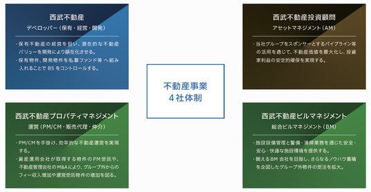 西武グループでは、2024年5月に発表した「西武グループ長期戦略 2035」において、不動産事業を核とした成長戦略を掲げており、「まちづくり」を通じて、さまざまな角度から不動産に付加価値をつけ、都市交通・沿線事業、ホテル・レジャー事業の事業機会を創出する役割を担っております。グループの持続的な成長を実現していくために、保有前提のビジネスモデルからキャピタルリサイクルと両輪で成長させるビジネスモデルを加速させるべく、「株式会社西武不動産投資顧問」「株式会社西武不動産ビルマネジメント(2025年4月1日付にて株式会社西武 SCCATより商号変更)」との不動産事業 4 社体制をスタートし、資本効率性の向上と成長投資を力強く推進してまいります。