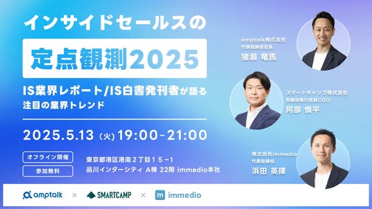また、発刊を記念してスマートキャンプ株式会社取締役執行役員COO 阿部氏とamptalk株式会社 代表取締役社長猪瀬氏をお迎えし、オフラインイベント「インサイドセールスの定点観測2025 IS業界レポート/IS白書発刊者が語る注目の業界トレンド」を5月13日に開催します。