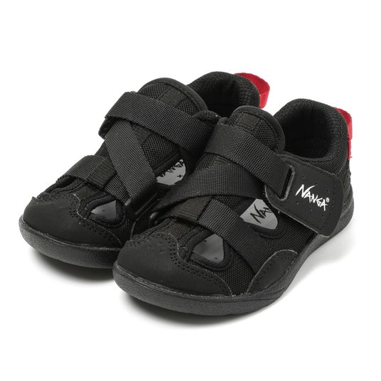 アウトソールには、“遊びながら足を鍛える”をコンセプトに展開するサブブランド「IFME+(イフミープラス)」のオリジナル機能性ソール「フレキシブルソール」を採用。縦横柔軟に曲がるソールは、でこぼこした道との相性も抜群です。さらに、足裏の動きにフィットすることで、足裏の筋肉も鍛えます。また、IFMEのウォーターシューズではおなじみの「水抜き仕様」で、ソールの穴から水が排出される構造になっているため、水はけがよく速乾性に優れています。アッパーには、Z字型ベルト「キネティックベルト」タイプを採用し、1回でつま先側・足首側のフィット感を調整できます。カラーはブラック・グレー・ブラウンの3色を展開。落ち着いた色合いに、ベルトの「NANGA」ロゴがクールなデザインに仕上げました。足の発育を意識した高機能ソールと、着脱のしやすいベルトにより、夏のレジャーやアウトドアにもピッタリの一足です。