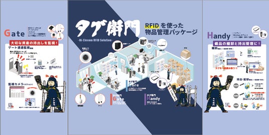備品管理業務の共通機能を持つタグ衛門Coreを中心に、備品の持出しを監視するタグ衛門Gate、棚卸と物品検索機能、及び、備品貸出返却管理台帳機能がセットになったタグ衛門 Handyで構成しています。