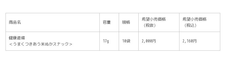 健康道場 <うまくつきあう米ぬかスナック><新発売>