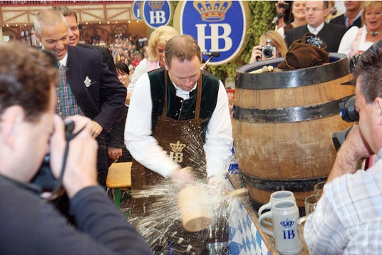 3月に製造して寝かせておいた味が濃く、アルコール分の高いオクトーバーフェスト用特別ビールが、マスと呼ばれる容量1リットルのビールジョッキに注がれ、最初のマスはバイエルン州首相に渡されます。