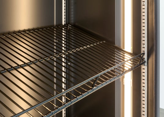 庫内のガイドレール上のフックを調整いただき、標準装備のラックを前後反転することで傾斜ラックとして使用できるため、ディスプレイ効果がさらに向上しました。