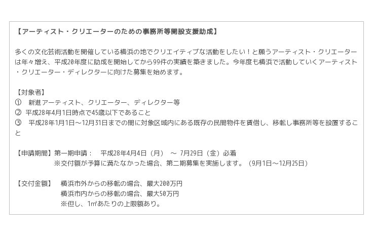 【アーティスト・クリエーターのための事務所等開設支援助成】