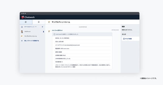 ChatworkとAsk OneをAPI連携することで、フォームへの入力完了時に任意のグループチャットにカスタマイズしたメッセージを投稿することが可能になり、回答内容に応じたスピーディな顧客へのアクションを実現できます。