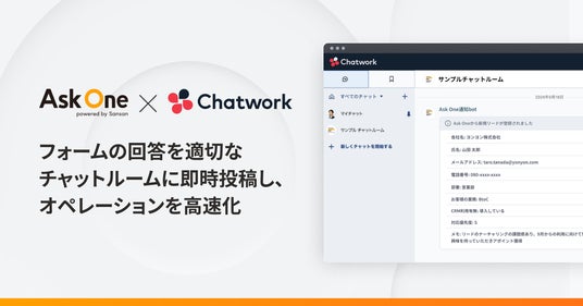 この度、ChatworkとAsk OneをAPI連携することで、Ask Oneフォームへの回答内容に応じて任意のグループチャットに即時メッセージを投稿することができるようになります。