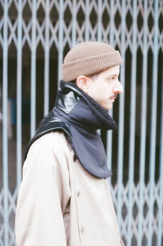 スポーティーな印象のネックウォーマーをモードな雰囲気に整え、秋冬のファッションアイテムとしてコーディネートも自由に楽しめるアイテムです。