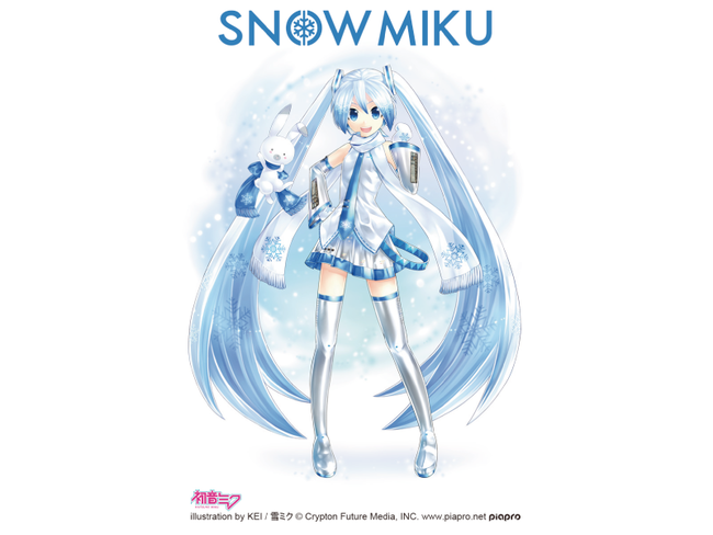「雪ミク」は、北海道を応援するキャラクターです。2010年の『さっぽろ雪まつり』で“真っ白い「初音ミク」の雪像”を作ったことをきっかけに誕生し、それ以来「雪ミク」が主役のフェスティバル『SNOW MIKU』が毎年北海道で開催されています。「雪ミク」に着せる衣装デザインは、毎年様々なテーマに沿ってインターネット上で広く応募しており、今冬もクリエイターの皆さんとともに北海道を応援しています。