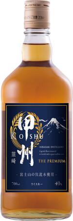 甲州韮崎ザ・プレミアムは富士山の清らかな伏流水を使用し、きめ細かく滑らかな舌触りに仕上げたブレンデッドウイスキーです。澄んだ味わいと、バニラや蜂蜜にピートが香る余韻をお楽しみいただけます。