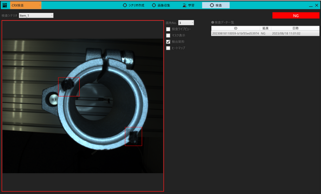 画像をAIソフトウェアに取り込み、OK/NGを判定します。