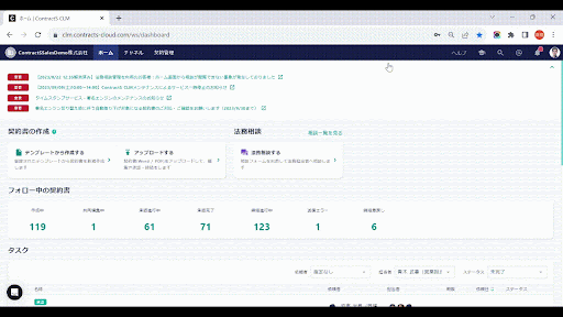 作成~管理まで1つのシステムでまとめられるContracts CLMのシステムでは、案件授受の段階から契約書含めすべてのやり取りと書類を記録保管でき、検索ニーズにも対応します。