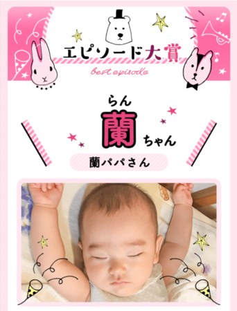応募総数1,000件超! 第6回「赤ちゃんの名づけエピソード大賞」を受賞したのは「蘭」ちゃん(投稿者:蘭パパさん)。パパからの投稿が大賞に選ばれるのは、ベビーカレンダー史上初です。感動の名づけエピソードを、ベビーカレンダーの人気連載マンガ家まっふさんの書下ろしマンガ付きで発表しました。