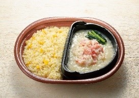 鶏がらスープに3種の魚介をブレンドし、卵白でとじた海鮮あんにカニカマの代表格である「香箱」をトッピングしました。シンプルな玉子チャーハンを合わせ、寒い時期にぴったりの商品です。