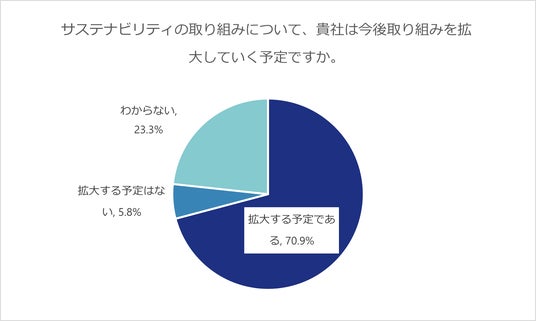 今後、サステナビリティへの取り組みを「拡大する予定である」と回答した企業は70.9%にのぼり、多くの企業が取り組みの強化を進めていることがわかる。