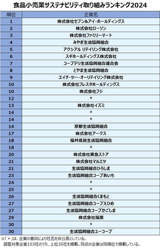 『食品小売業のサステナビリティ取り組みランキング』発表