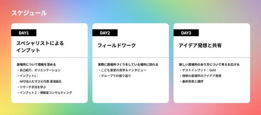 そのような背景に着目し、今年のプログラムのテーマを「Ibasho(居場所)」としました。全3回の本プログラムには、「こども食堂」の支援を通じ、誰もとりこぼさない社会の実現を目指して活動する「認定NPO法人全国こども食堂支援センター・むすびえ」の理事長 湯浅誠氏、人間を中心に据えた都市づくりや場所と人の関係性の捉え直しから、居場所の新しい価値の発見を目指す博報堂DYグループの各領域のスペシャリストたちが、講師やチームメンバーとして参加。次世代を担う高校生の皆さんと博報堂DYグループ社員が1つのチームになり、これからのIbashoについて考えていきます。