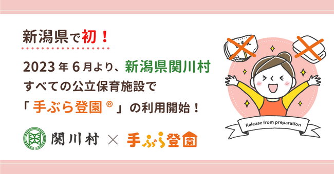 BABY JOB株式会社(本社:大阪府大阪市、代表取締役社長 上野公嗣)は、2023年6月より新潟県関川村の公立保育施設全園において、保育施設向け紙おむつのサブスク「手ぶら登園」が利用されることをお知らせします。新潟県内の公立保育施設では、初の取り組みになります。