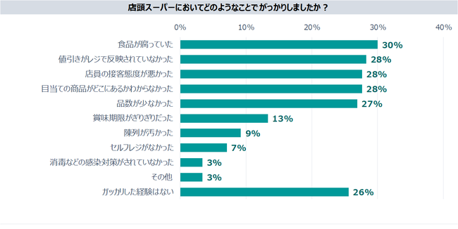 4.店頭スーパーで74%がガッカリ経験あり。「食品が腐っていた」が最多