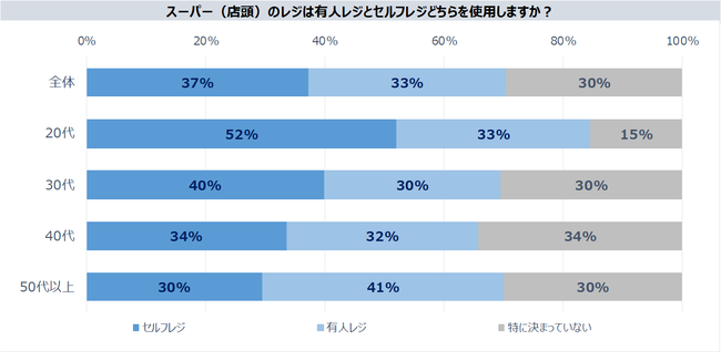 5.セルフレジと有人レジの使用率は二分化。若年層はセルフレジを支持