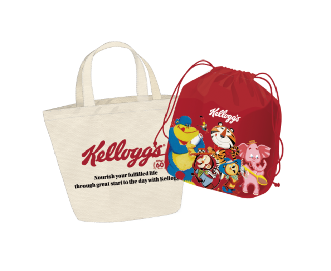 さらに、栄養バランス満点のキッズシリーズ3品や、健康志向の高まりで注目が高まっているオートミールやオールブラン フルーツミックスの計5製品において、期間限定で本キャンペーンの告知を入れたパッケージデザインを発売いたします。ぜひ、様々な製品をお楽しみいただく中で、本キャンペーンに応募して、トートバッグ&保温保冷巾着セットをゲットしてみてください。※一部を除く