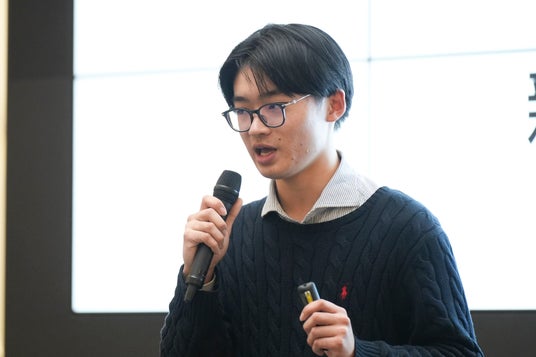 高校生部門で文部科学大臣賞を受賞した基島隆蔵さんのプレゼンテーション
