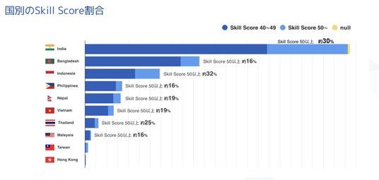 (画像:2022年5月時点の「Findy Global」国別のSkill Score割合)