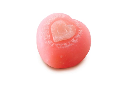 バレンタインにちなみ、すべすべとやわらかな外郎(ういろう)で白あんをつつみ、ハートの形をあしらいました。ほっこりあたたかな心をこめたような、優しい味わいの生菓子です。