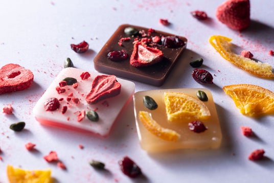 ・タブレットチョコレート?と思ってしまうような、鮮やかなビジュアル・白羊羹×柑橘、すりこはく×紅羊羹×ベリー、しょこら×ベリー、選りすぐりの素材がおりなす味わい・鶴屋吉信を象徴する「鶴丸のれん」の紺色をイメージした特製化粧箱+バレンタイン専用タグ付き