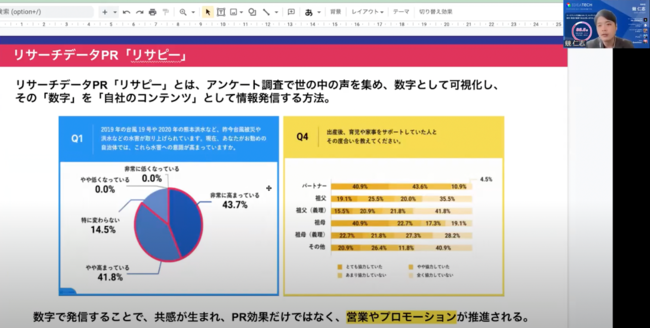 国内最速級のリサーチPR「リサピー(R)️」(https://ideatech.jp/service/research-pr)を運営する株式会社IDEATECH(本社:東京都港区、代表取締役社長:石川友夫)が、株式会社SNSコーチ(本社: 東京都千代田区、代表取締役:高橋 恭介)と共催した「オリジナルコンテンツ×SNSを活用した新たな営業手法を徹底解説」と題するオンラインセミナーは、SNSを使ったマーケティングの基礎から、戦略的なSNS活用方法、コンテンツの作成方法など、ビジネスを成長させるためのノウハウが詰まった有意義なイベントとなりました。