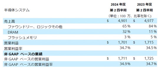 社長兼CEO のゲイリー・ディッカーソンは次のように述べています。「当社は2024年も引き続き堅調な業績を上げており、第2四半期の売上高と利益は予想範囲の上端付近となりました。当社はマテリアルズエンジニアリング技術の強力なポートフォリオを擁しており、これを利用して作られる半導体はAI、IoT、電気自動車、クリーンエネルギーといった地殻変動的な技術革新を支えています。私たちはこうした長期トレンドと共に成長できる好ポジションにあります」