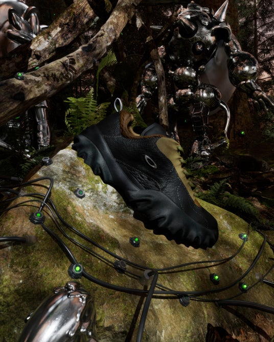 Oakley Factory Team Full Grain Leather Chop Saw - Black/Chive(フルグレイン レザー チョップソー ブラック/チャイブ)は、滑らかなブラックのフルグレインレザーを使用し、シューレースや履き口にチャイブグリーンがさりげなく織り込まれアクセントとして際立つデザインとなっています。高級感あふれる素材とボリュームのあるシルエットが調和し、控えめながらも洗練された美しさを演出します。
