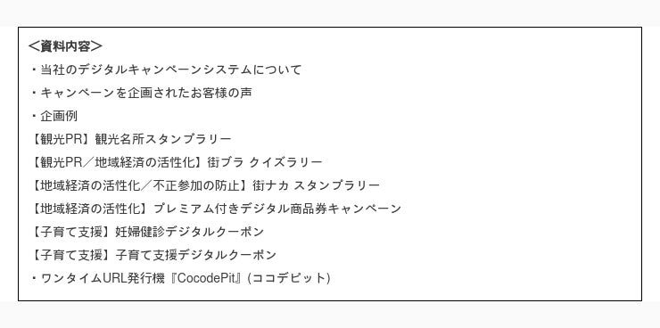 資料をご希望の方は、下記サイトのお問い合わせフォームより「【自治体向け】デジタルキャンペーン企画例集送付希望」と記載の上、お申し込みいただくか電話にて問合せください。