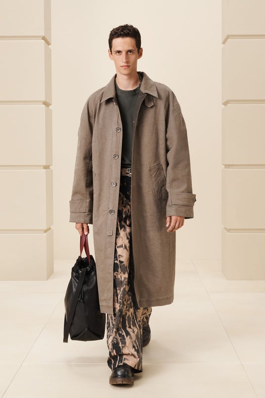 今シーズン、SRPLSは日常のメンズウェアに新たな視点を加え、ありふれたスタイルから個性的なスタイルへと進化させています。精巧に仕立てられたニットセーターには、しっかりとしたメッシュのデザインを施しています。また、ブラックのニットフーディーは、トップステッチで立体感を表現。ワークウェアはややオーバーサイズで、ベルベットなどインパクトのある素材を用いて再構築されています。フライトジャケットは、豊かな風合いとエイジング加工の仕上がりで展開しています。フェイクファーのスライドサンダル、マール編みのテリースウェット、そしてフェイクシアリングを用いた逆さまのアビエータージャケットが、上質な着心地の良さだけでなく素材の質感の魅力を最大限に提供しています。さらには、一際目を引くアニマルプリントの自然なカモフラージュも登場。ブーツは頑丈なラグソールを使用しています。