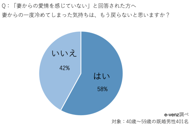 では、一度冷めてしまった妻の気持ちは、戻らないと思うかを尋ねてみました。