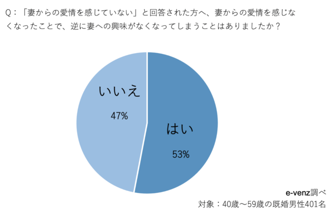 最後に「妻からの愛情を感じていない」と答えた方に、愛情を感じなくなったことで妻へ興味がなくなったのかを尋ねてみました。