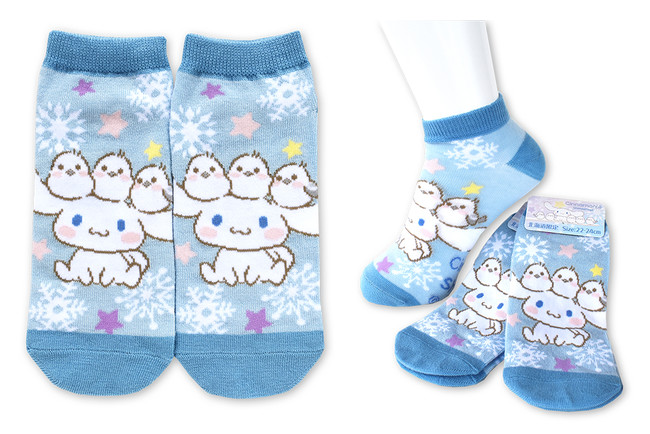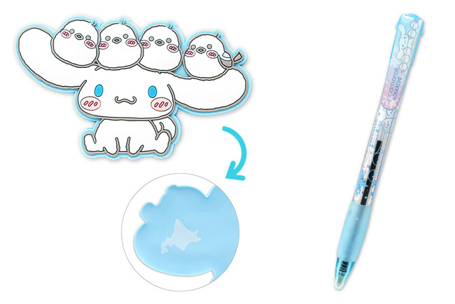 同シリーズは、雪だるまのような丸いからだにつぶらな瞳、もふもふフワフワな愛くるしい姿で北海道にのみ生息する「シマエナガ」が、シナモロール・クロミに舞い降りたようなデザインです。