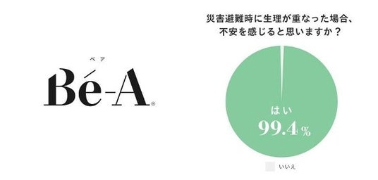 Be-A Japanが実施したアンケート*によると実に99.4%の方が「災害避難時に生理が重なった場合、不安を感じる」と回答。