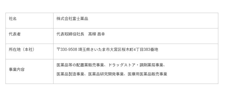 【株式会社富士薬品 会社概要】(URL:https://www.fujiyakuhin.co.jp/ )