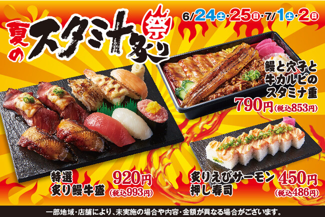 持ち帰り寿し店の「小僧寿し」「茶月」を運営する株式会社小僧寿しは、持ち帰り寿し店「小僧寿し」にて、6月24日(土)~25日(日)・7月1日(土)~2日(日)の期間限定で、「夏のスタミナ炙り祭」を開催致します。
