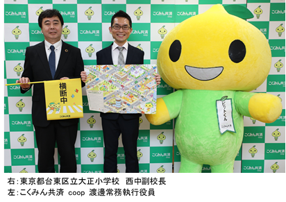 こくみん共済 coop〈全労済〉(全国労働者共済生活協同組合連合会 代表理事 理事長:廣田 政巳)は、未来ある子どもたちを交通事故から守っていく取り組み「7才の交通安全プロジェクト」において、全国1,499校の小学校に73,633本の横断旗(ピットくん・コーすけコラボ横断旗含む)を寄贈し、2023年5月23日に寄贈先の一つである東京都台東区立大正小学校で寄贈式と子どもの交通安全に関する意見交換会を行いました。