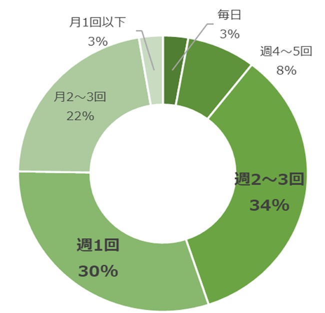 ・週1~3回「ZENB NOODLE」を食べている人が全体の64%を占める。