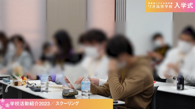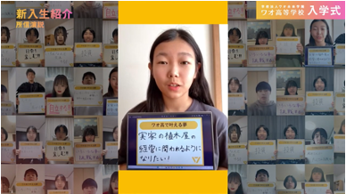 ワオ高校では、議論型の授業で自分の考えを深め、実社会で生きる力を養っていきます。入学式から新入生は所信演説にチャレンジ。「自己紹介」「ワオ高校で頑張りたいこと」「将来の夢」を、コメント動画を通じて発表してくれました。『自立する、インフルエンサーになる』『何が自分に合っているか、やりたいか、夢を見つける』『初めての事にたくさん挑戦し、物事をたくさんの目で見れるようになる』『世界に目をむけ、家業の植木屋の経営に携わる』など、まさに勇者たちが、一人ひとりの思いを、明るく力強く、届けてくれました。