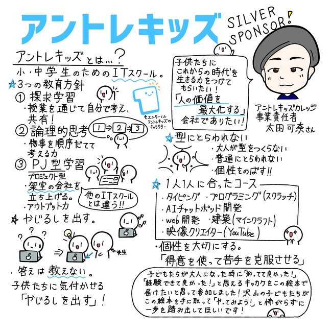 シルバースポンサーページのデザインは「中高生向け起業体験型人材プログラム~MANABUYA~」(※3)の卒業生の中学生が作成してくれました。
