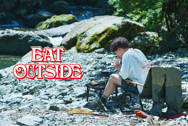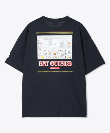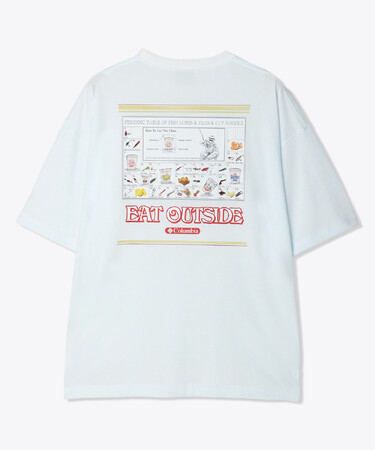 オムニフリーズゼロは汗などのカラダが発する水分に反応して生地全体を瞬時にクーリングするコロンビア独自の冷却テクノロジーです。同テクノロジーを搭載した「ベイシントゥーガーデンショートスリーブTシャツ」は、フィッシングやキャンプに代表される夏のアウトドアをより快適に楽しむことができるアイテムです。バックプリントは、コロンビアブランドのルーツでもあるフライフィッシングで使用されるルアーやフライが、チャート形式で配置されたアーカイブグラフィックをオマージュ。「EAT OUTSIDE」のメッセージのもと、カップヌードルシリーズの商品パッケージや具材のイラストがチャートの中にちりばめられています。